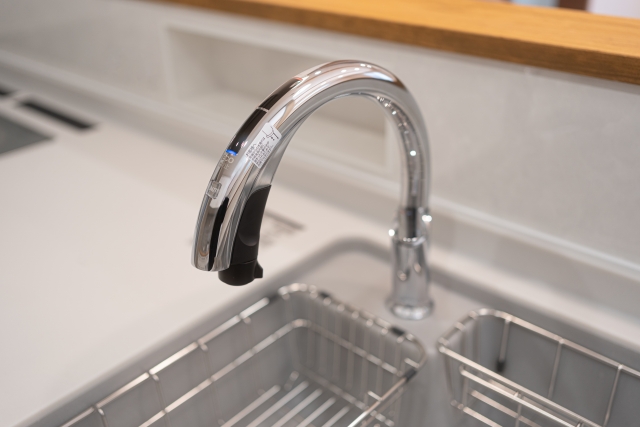 キッチンで特に人気が高まっているのが、タッチレス水栓です。センサーに手をかざすだけで吐水・止水ができるため、調理中に肉や魚を触った手でレバーを汚すことがありません。